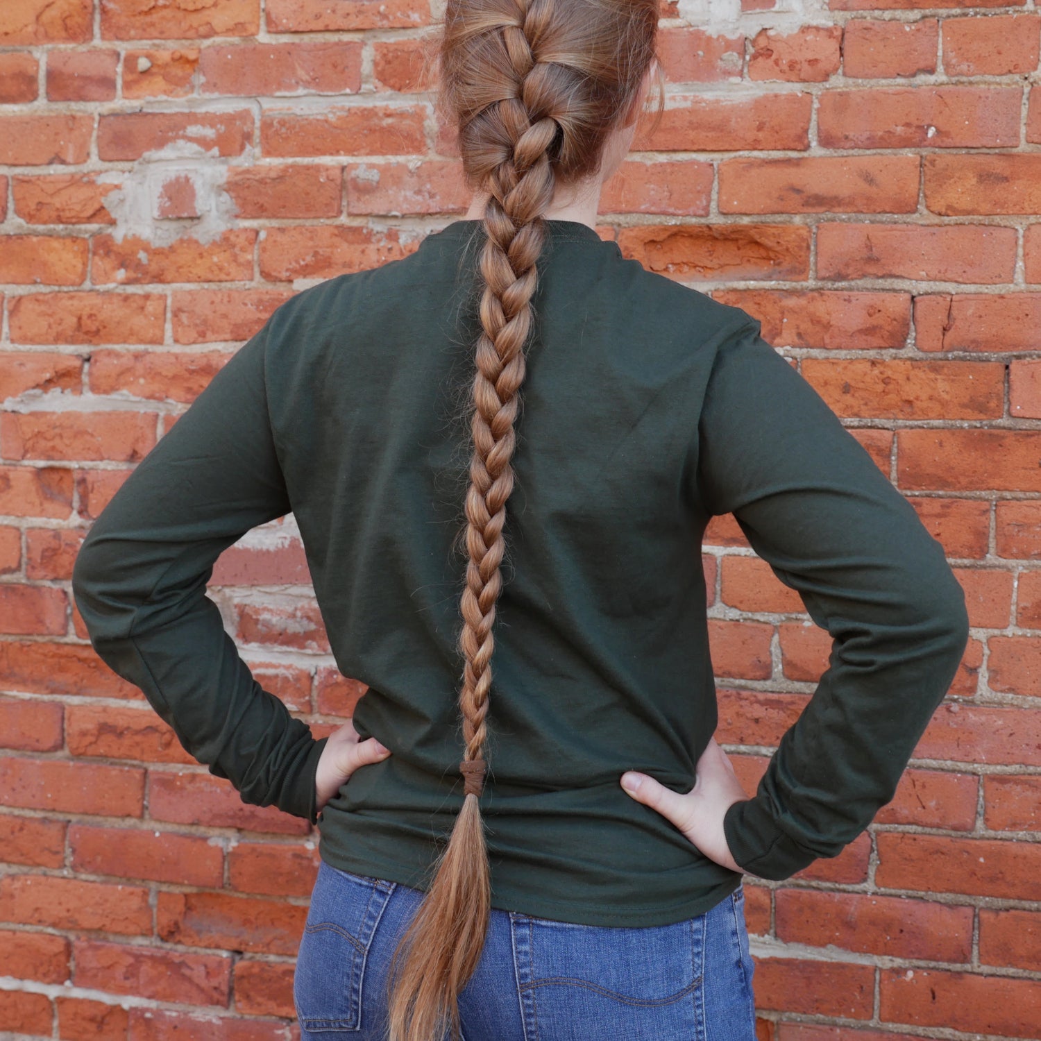 Green long sleeved shirt with a boar nutmeg tavern design in cream.