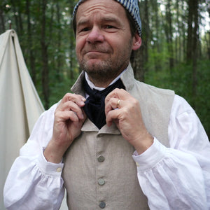 Hand-rolled and hand-stitched seams. Made of natural silk thread, approximately 13" x 69". Also available in white. Perfect for men's outfits from the 17th to 19th century, as well as for all ye sea-faring folk. Imported from China