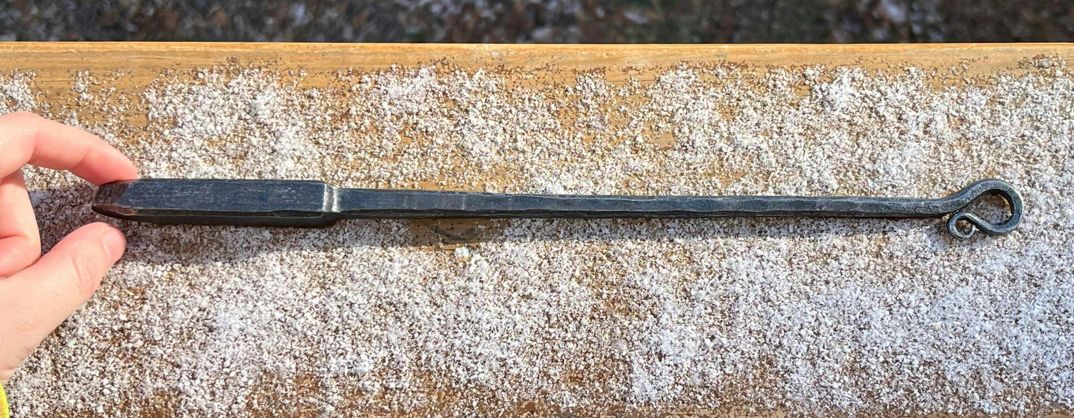 Toddy Rods (also known as Flip Dogs) were a popular way to heat drinks and add some table-side flair in the 18th and early 19th centuries. These particular Toddy Rods are handmade from wrought iron in Tennessee by a master blacksmith. Because they are all handmade the sizes vary, but a good approximation is 11-13" long.