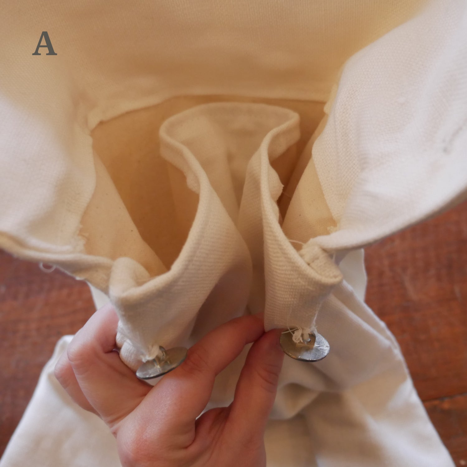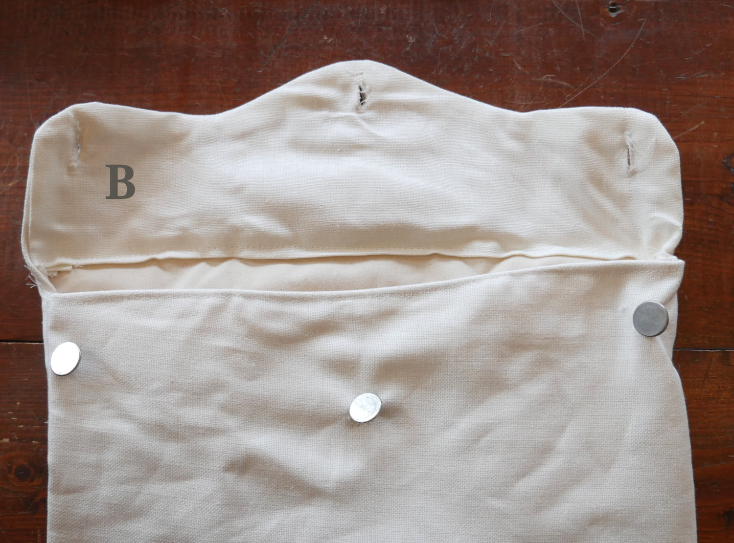 We had a "bad" batch of our lined linen knapsacks in both regular and long straps. Structurally they are fine, and when they are all buttoned up, you can't tell there are any flaws with it, aside from two of them. However, when you open the flap, the inside front panel is at a slant, and not even with the flap of the knapsack. There are varying degrees of this slant, from hardly noticeable to extremely noticeable. Please see description and pictures.