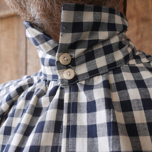 This is the same pattern as our 18th Century Workshirt only in lighter weight checked cotton fabric. This colonial style was used for over 100 years, well into the 19th century. Authentic cut with neck and sleeve gussets. Great for sailors and other working classes. Made from 100% cotton.