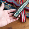 Our beautiful 100% wool garters are handmade by the Townsend family on an inkle loom. Garters measure about 1-1/4" to 1-1/2" wide by 38" long. You can view in stock items, available patterns, and color combinations here. If you would like a sash made to order please choose one to three colors and we will weave you a custom pair. Please allow 4-10 weeks for shipment.