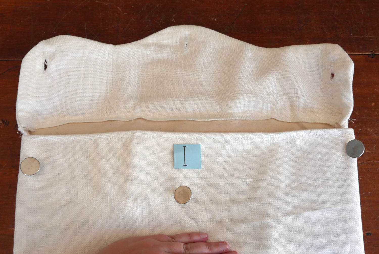We had a "bad" batch of our lined linen knapsacks in both regular and long straps. Structurally they are fine, and when they are all buttoned up, you can't tell there are any flaws with it, aside from two of them. However, when you open the flap, the inside front panel is at a slant, and not even with the flap of the knapsack. There are varying degrees of this slant, from hardly noticeable to extremely noticeable. Please see description and pictures.